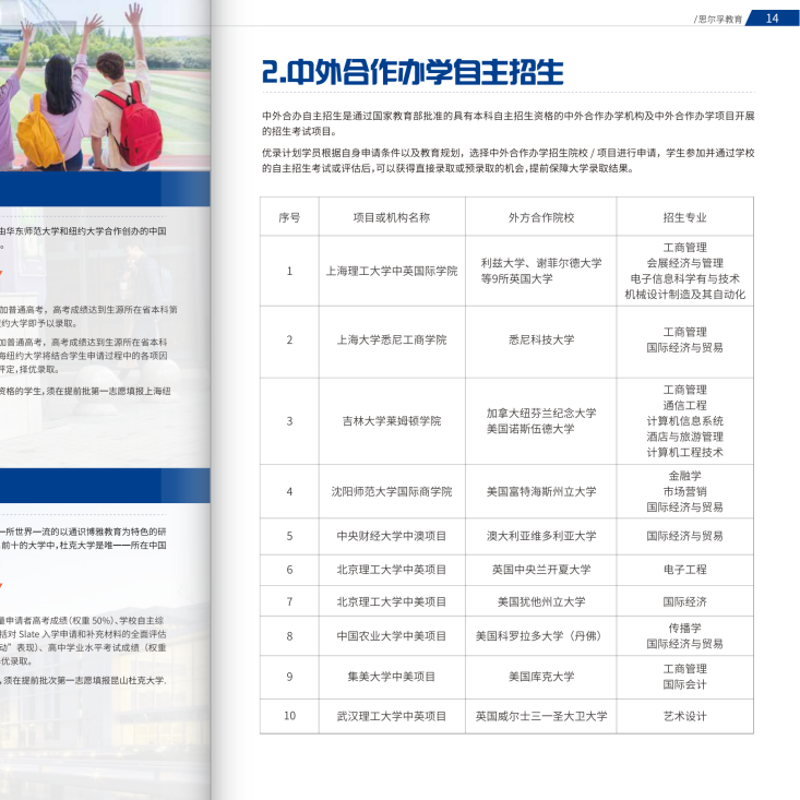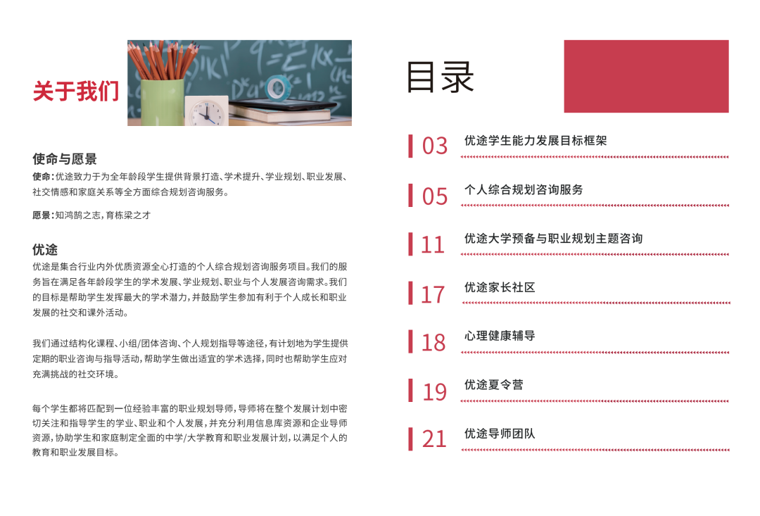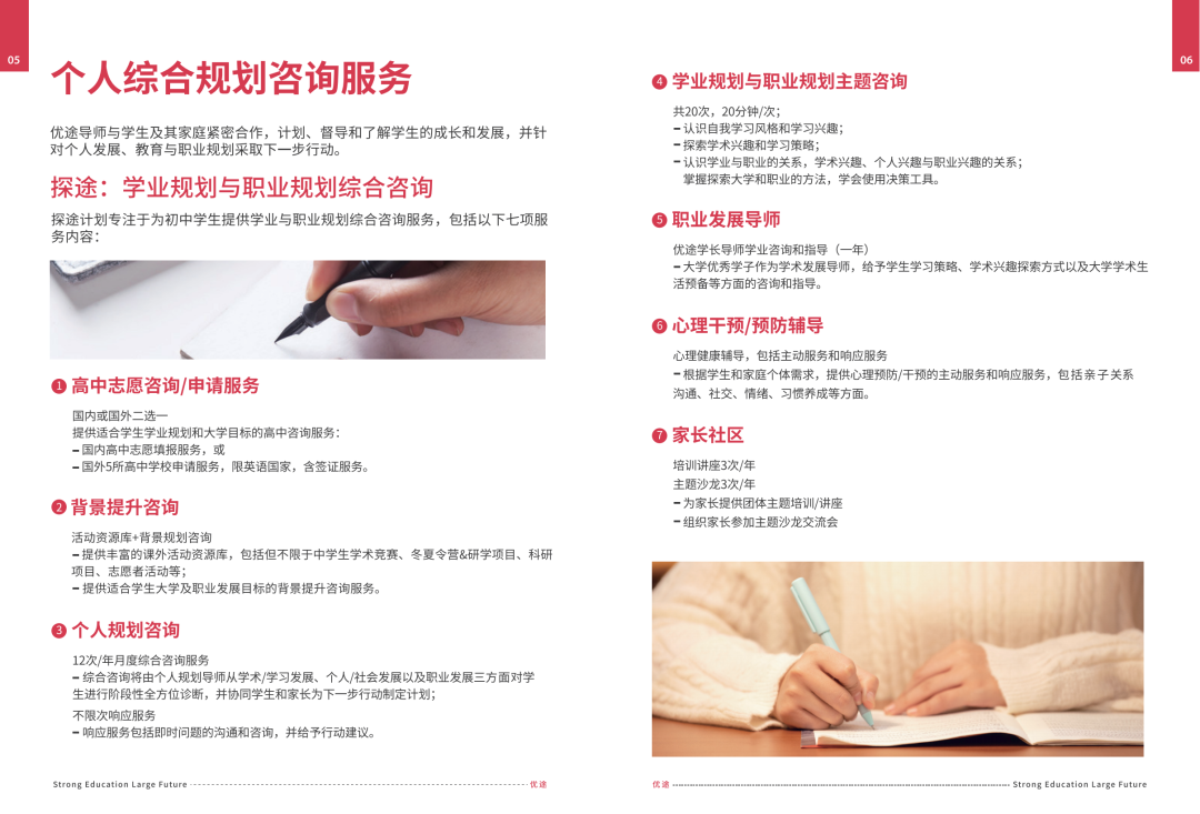 发布时间: 2021-11-04 浏览量: 12党建强则企业强,党建兴则企业兴 副总经理陈庆带我们参观经过改造的企业文化墙及党建阵地。CEO阮尚文作为科技协会党支部组织委员,坚信党的领导会为民营企业发展指明方向,注入力量,增强自信。坚持做强党建工作是助推企业发展,助力企业经济转型升级、促进企业健康发展的有力保障。在党建引领下,希望思尔孚能成为党建示范企业,以正面正向积极地态度带领企业不断壮大。 携手并进 共创未来 阮尚文 四川海归学者科技协会 党支部组织委员、副会长 成都思尔孚教育咨询有限公司 创始人兼CEO 曾任上海理工大学中英国际学院西南招生负责人 陈庆 入党积极分子 成都思尔孚教育咨询有限公司 联合创始人兼副总经理 第三届海归杰出人才评选 海创科教领奖人物 毕业于德国马格德堡大学 参与希腊扎金索斯岛“East Flower”小区项目收购与继续开发; 中资企业收购阿联酋“中国城”项目并进行运营管理; 思尔孚职业发展导师 思尔孚升学服务及职业发展计划联合发起人 思尔孚教育(原思尔孚国际)创立于2012年,一家专注于青少年学业及职业发展规划的教育咨询类企业。 公司拥有一支专业化分工、高度合作的团队,包括资深研发团队、职业规划导师、心理咨询师以及专家顾问团队,共同致力于优化青少年的成长规划与指导策略。 通过多年摸索与实践,公司逐步完善以个人学业综合规划咨询服务为核心的“思尔孚优录计划”,以及个人学业&职业综合发展规划咨询服务为核心的“思尔孚优途计划”两款拳头产品,赋能广大青少年学业成长和职业发展。 思尔孚教育经历近10年品牌沉淀,可提供国内外3000+优质院校申请服务,已覆盖全国25座城市,为学员链接知名企业200+家,为全国1000多个家庭提供职业发展规划服务。 优录计划 ABOUT 1 高考志愿指导 1 2 多元申请方案 在高考指导服务之外,为学生提供多元路径的高等教育申请方案 优途计划 ABOUT 个人综合规划咨询服务 1 探途计划 学业规划与职业规划综合咨询 2 知途计划 大学预备与职业规划综合咨询 3 领途计划 职业发展与职业成功综合咨询